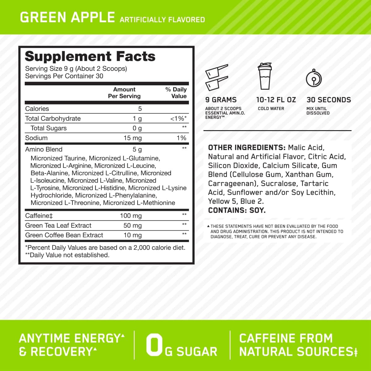 أمينو إنيرجي من أوبتيموم نيوترشن هو مكمل غذائي يوفر الطاقة والتركيز ويساعد في تعافي العضلات. يحتوي على مزيج من الأحماض الأمينية، والكافيين، ومكونات أخرى لتعزيز الطاقة والتركيز، مع دعم تعافي العضلات.