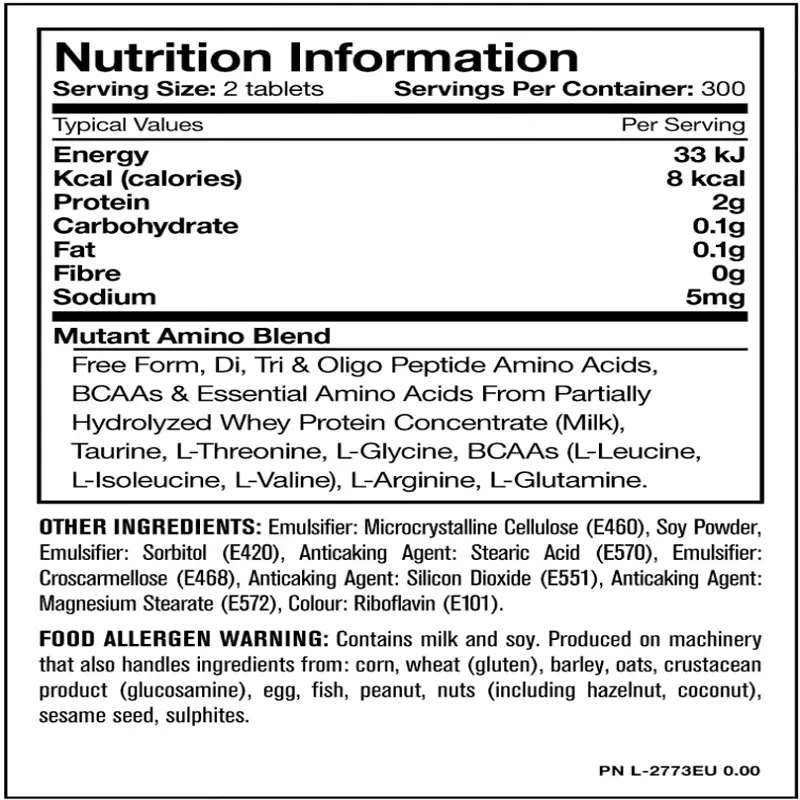 "ميوتانت أمينو 600 حبة" هو مكمل غذائي يحتوي على أحماض أمينية أساسية ومتفرعة السلسلة (BCAAs)، وهو مصمم لدعم إصلاح العضلات وتجديدها. يُعد مصدراً مركزاً وعالي الجودة للأحماض الأمينية التي تعتبر اللبنات الأساسية للعضلات.